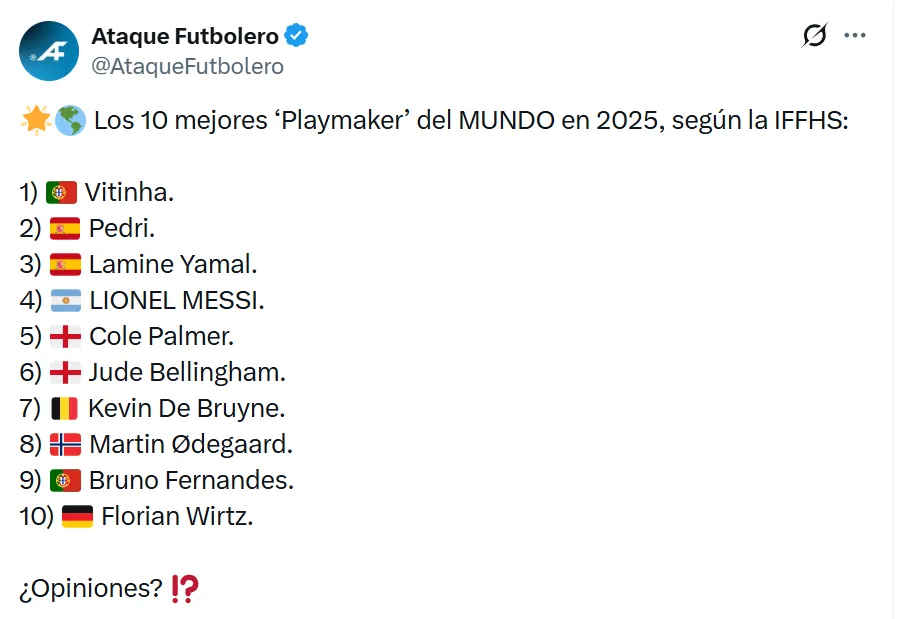 En el futbol actual, cada vez más físico y veloz, sigue habiendo un perfil de jugador que marca la diferencia desde la inteligencia y la creatividad. No siempre son los máximos goleadores ni los que más titulares se llevan, pero sí los que hacen funcionar a sus equipos. En ese contexto, la IFFHS publicó su ranking con los mejores playmakers del mundo en 2025.
