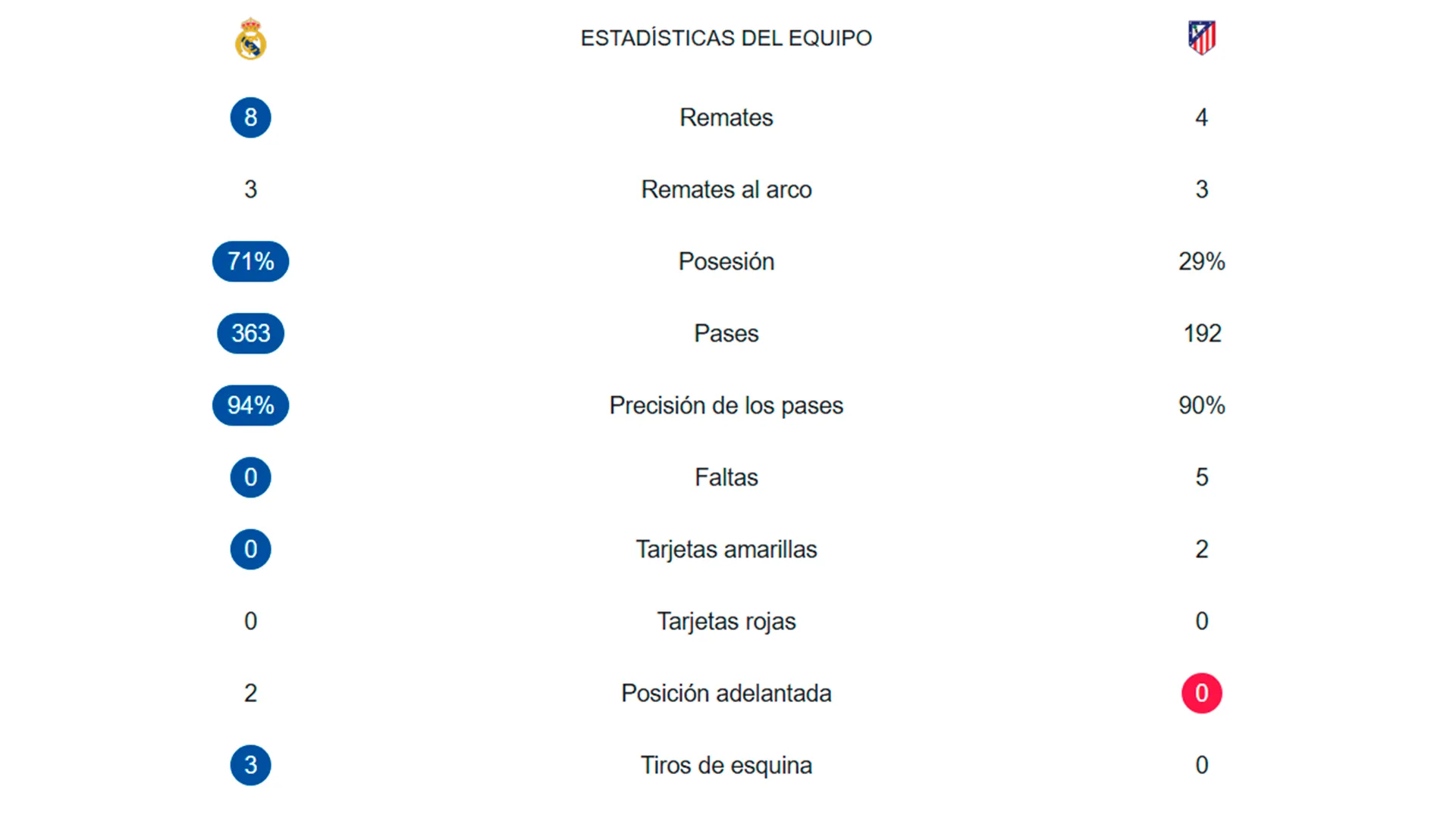 - Real Madrid 1-1 Atlético de Madrid