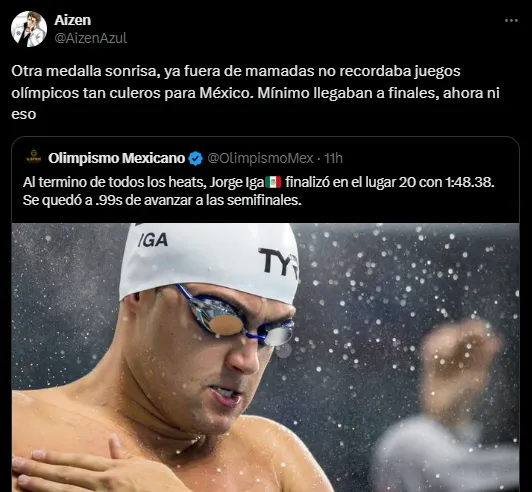 No cayó bien en los fanáticos que más de una decena de representantes mexicanos hayan sido eliminados tan tempranamente en París 2024, y así lo manifestaron públicamente en las redes, donde generaron un intenso debate que tuvo opiniones de todo tipo.