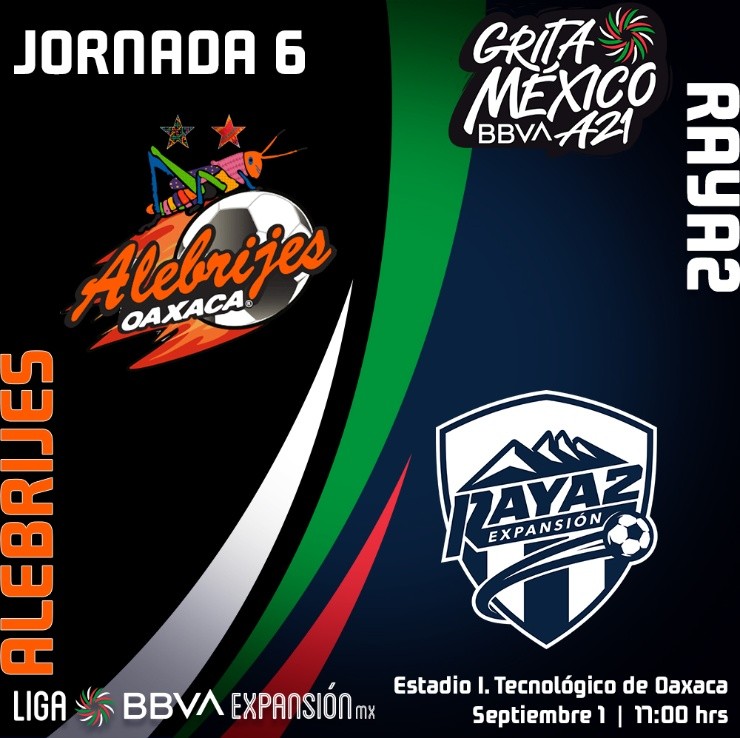 Continúa la sexta jornada por laLiga BBVA Expansión MX, en este casoTorneo Grita México Apertura2021, dondeAlebrijes de Oaxacase enfrentará con Raya2 Expansión. Este partido va a tener lugar en elEstadio Tecnológico de OaxacaHOY,miércoles 1° de septiembre, el cual contará con la transmisión EN VIVO y EN DIRECTO de ESPN 3desde las 17:00 horas CDMX. Primer duelo oficial entre sí.