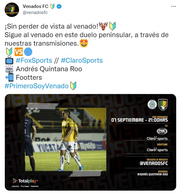 El partido de Cancún FC vs. Venados de Yucatán será HOY, martes 7 de septiembre,desde el Estadio OlímpicoAndrés Quintana Roo a las 21:05 horas CDMX.