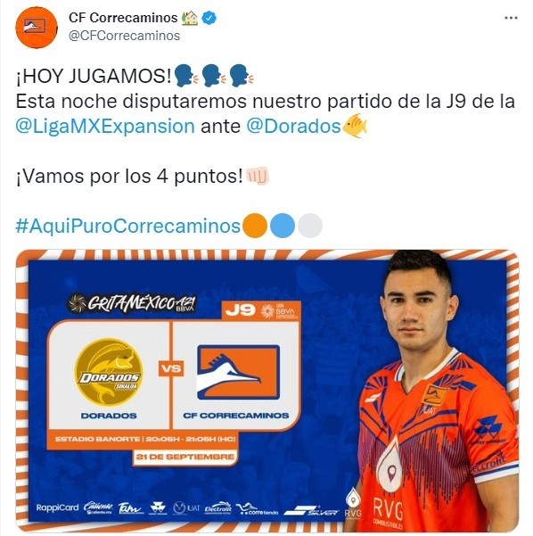 El partido de Dorados de Sinaloa vs. Correcaminos UAT será HOY, martes 21 de septiembre,desde el Estadio Dorados a las 21:05 horas CDMX.