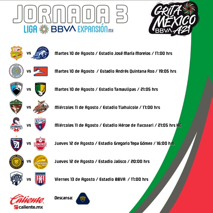 +¿Cuándo comienza la jornada 3 del Torneo Apertura 2021 de la Liga BBVA ExpansiónMX?
