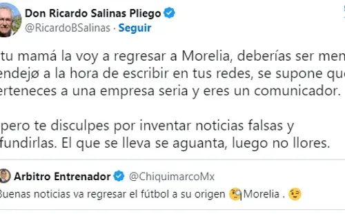 “Buenas noticias va regresar el futbol a su origen Morelia”, compartió el hoy analista de TUDN en referencia al extinto club que cedió su lugar a Mazatlán. Inmediatamente llegó la furiosa respuesta delTío Richi, quien no dudó en llamarlo “pendejo” y atacarlo con referencias a su madre, agregando que estaba inventando al respecto.
