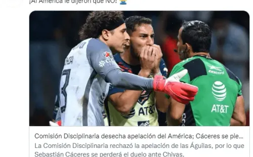 Después de revisar el descargoy realizar la investigación correspondiente, las autoridades rechazaron la apelación del América, por lo que el elemento uruguayo estará fuera el gran partido que disputaránante el Rebaño Sagrado, y deberá cumplir la fecha de suspensión estipulada previamente.