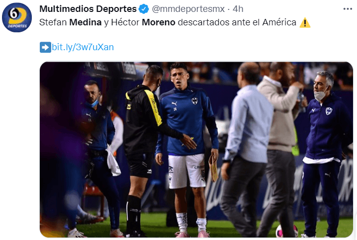 De acuerdo a información de Multimedios, tanto John Stefan Medina como Héctor Moreno no podrán estar presentes ante el Azulcrema. Según la misma fuente, el lateral colombiano presentauna lesión en su muslo derecho; mientras que el experimentado zaguero tiene lastimado su aductor izquierdo.