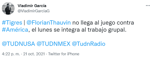 De cara este juego, mucha era la expectativa por conocer si Florian Thauvin lograba recuperarse de su lesión, la cual lo ausentó por casi un mes desde el 25 de septiembre en el juego ante Pumas. Este jueves, reportes periodísticos resolvieron la incógnitade siel francés se encuentra en condiciones de regresar con el conjunto Auriazul.