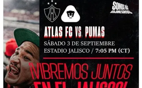 El juego Atlas vs. Pumas UNAM se llevará a cabo este sábado 3 de septiembre, en el Estadio Jalisco, desde las 19:05 horas CDMX.