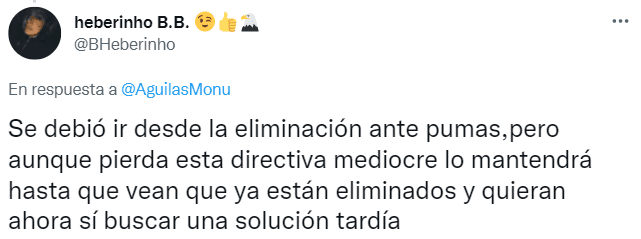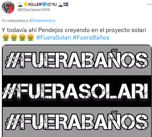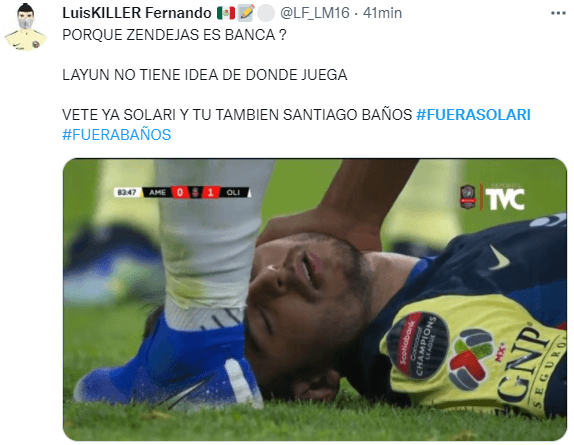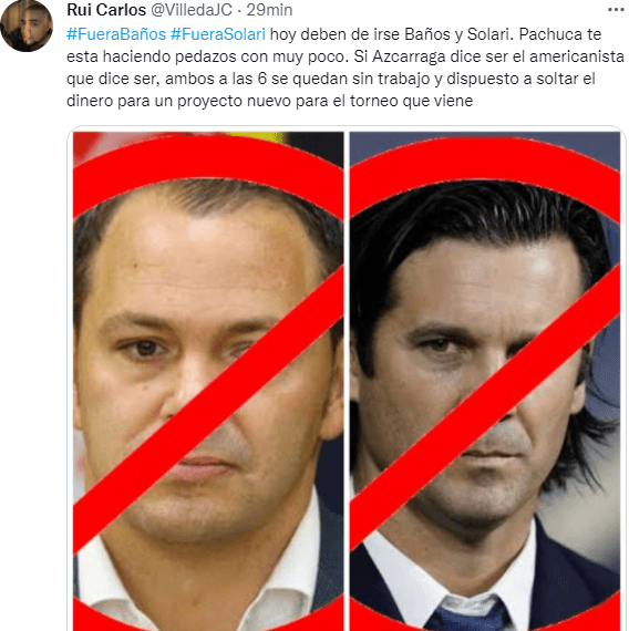 Mientras sucedían las desgracias para el América, y también al finalizar el encuentro, los fanáticos Azulcrema explotaron e hicieron sentir todo su descontento a través de las redes sociales para unificarse en un pedido: la salida de Santiago Solari y Santiago Baños. El mal nivel mostrado en el 2022 y la falta de resultados colmaron la paciencia de la grada.