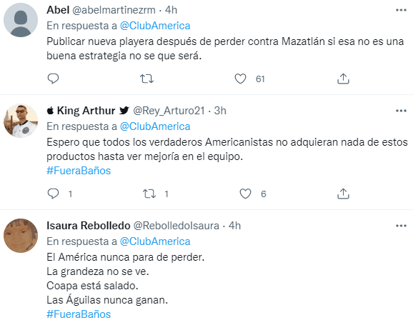 A través de las redes sociales, los fanáticos de Las Águilas se manifestaron en contra del nuevo jersey y aprovecharon para ir más allá y reclamar por el irregular presente del equipo de Santiago Solari, quien no logra hacer pie en el torneo mexicano y viene de caer ante Mazatlán.