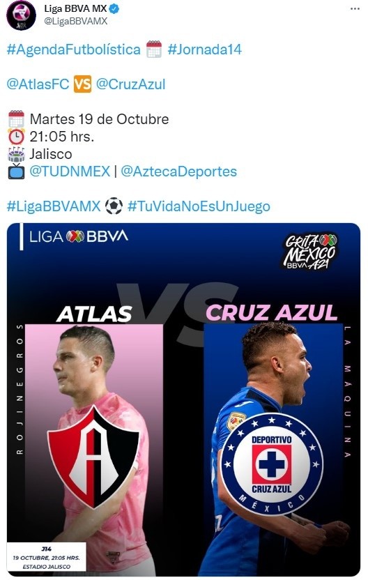 HOY | EN DIRECTO | EN VIVO | ONLINE | Se viene un choque más que importante dentro de lo que tiene que ver con las últimas fechas del campeonato regular. Cruz Azulestará midiéndose contraAtlasen el juego correspondiente a la14° jornadapor elTorneo Grita México Apertura 2021de laLiga MX.El choque va a tener lugarHOY,martes 19 de octubre, en elEstadio Jaliscodesde las21:05 horas CDMX. Además se podrá mirarEN VIVOyEN DIRECTO por las pantallas deTUDN,Afizzionados y Canal 5en México.