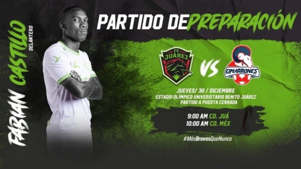 El encuentro entre FC Juárez vs. Cimarrones de Sonora,por un amistoso de pretemporada, tendrá fecha para HOY,jueves 30de diciembre, con sede en el Estadio Olímpico Universitario Benito Juárez.