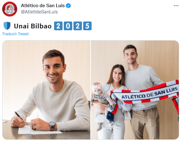 A través de sus redes sociales, Atlético de San Luis dio a conocer que Unai Bilbao permanecerá hasta el 2025 en la institución,donde ya es un valuarte del equipo y muy querido por los aficionados. Incluso, el propio futbolista dio sus palabras:“Para mí es un orgullo, desde que llegué siempre he dicho que estoy muy contento aquí y considero a esta como mi segunda casa”.