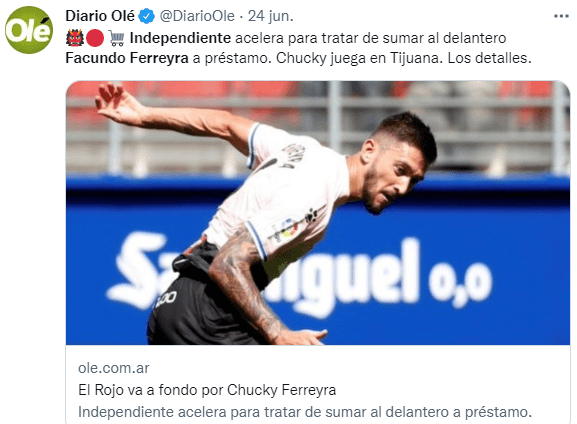 Por si fuera poco, en este periodo de transferencias se ha concretado la llegada de otro artillero argentino como Franco Di Santo. Por este motivo, el equipo de la frontera y el propio Chucky acelerarían su salida rumbo a un gigante argentino interesado en sus servicios: Independiente de Avellaneda.