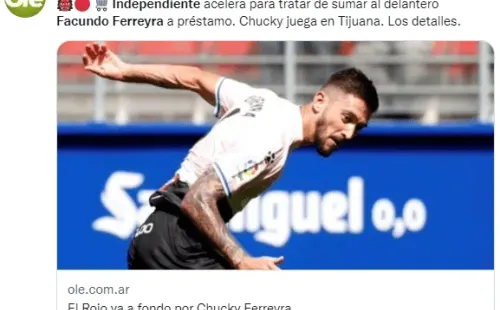 De acuerdo a información de medios argentinos, Facundo Ferreyra llegaría al Rojo de Argentina en condición de préstamo con cargo de 400 mil dólares, además de una opción de compra (en la que se descontaría dicho monto).