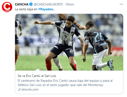 La salida de Eric Cantú significa la octava baja de la plantilla para la próxima temporada: se suma a los confirmados Jonathan González, Adrián Mora, Avilés Hurtado, Nicolás Sánchez, Miguel Layún, además de los inminentes traspasos deAké Loba al Nashville de la MLS y Hugo González a FC Juárez.
