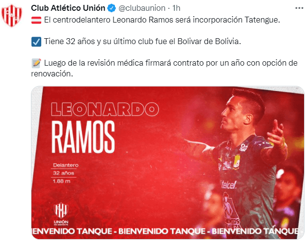 Este jueves, el delantero argentino de 32 años fue anunciado oficialmente como nuevo refuerzo de Unión de Santa Fe, equipo de la Primera División de la Argentina. Allí también fichará de manera ‘gratuita’ y con un contrato por un año con opción a renovación por parte del conjunto ‘Tatengue’.