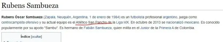 Mientras tanto, tal y como como suele ocurrir con las figuras públicas, en Wikipedia ya se animaron a pronosticar cuál será su próximo club. Como parte de alguna ‘broma’ o especulación de algún editor de la popular enciclopedia online, Rubens Sambueza ya aparececomo refuerzo de Pumas UNAM a partir del 2022.