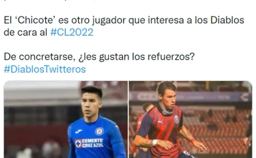 “Pol Fernández es pretendido por #Toluca por lo tanto buscará hacer una oferta que le sea atractiva tanto para él como para #CruzAzul . El ‘Chicote’ es otro jugador que interesa a los Diablos de cara al #CL2022”, escribió la comunicadora a través de su cuenta de Twitter.