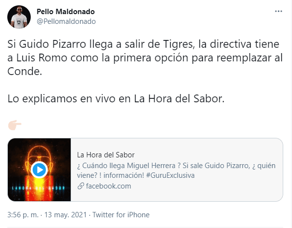 De acuerdo a la fuente, en caso de que el mediocampista Guido Pizarro se marche de Los Felinos, la dirigencia irá a la carga por Luis Romo, figura absoluta de un Cruz Azul que apabulló en la primera parte del Guard1anes 2021.