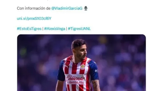 El contrato de Alexis Vega con Chivas de Guadalajara vence a mediados del 2022, mientras el Rebaño intenta a toda costa una pronta renovación del vínculo. En ese sentido Tigres también podría atinar a esperar que el jugador se marche libre tras el Clausura y llegue ‘gratis’. De lo contrario, el valor de su carta supera los 7 millones de dólares.