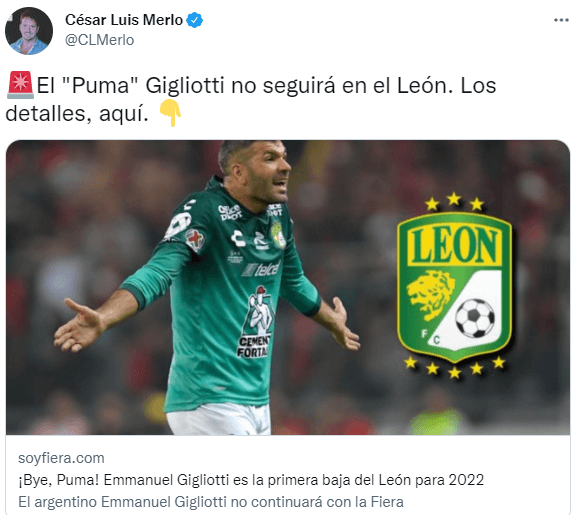 De acuerdo al reportero Ezequiel Gasca, de Código Guanajuato, el ‘Puma’ Gigliotti tiene negociaciones avanzadas para convertirse en refuerzo del Atlético de San Luis. En caso de llegar al conjunto potosino, vestiría la playera de su tercer club en México, país donde totaliza 97 partidos jugados y 21 goles anotados.