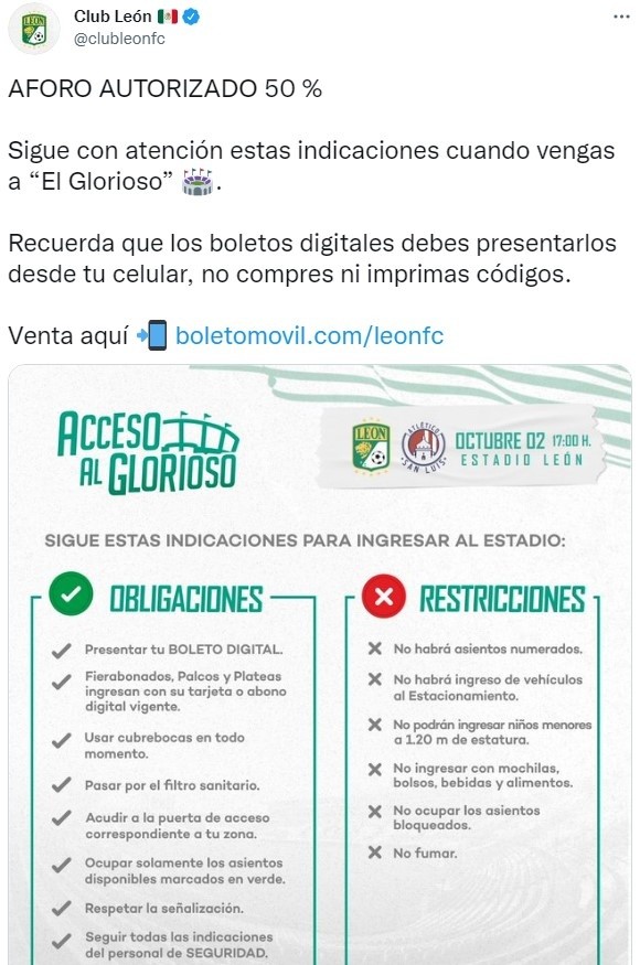 El partido deLeón vs. Atlético San Luis por la Liga MX será HOY,sábado 1° de octubre,desde las17:00 horas CDMXy en elEstadio León.