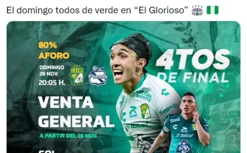 Leóntendrá su choqueconPueblaHOY,domingo 28 de noviembre,desde el Estadio Leónypor la vuelta de los cuartos de finalenla liguillade la Liga MX,con horario pactado para las20:05 hora CDMX.