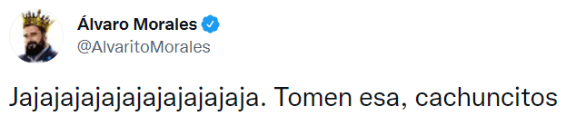 “Jajajajajajajajajajajaja. Tomen esa, cachuncitos”, escribió el narrador y analistacuando a los del Pedregal le anularon correctamente un penalti a instancias del VAR. Y un rato antes había soltado otra extensa risa cuando el delantero de Atlas se lució con la única anotación de la noche. “Un equipo malo y sin buen trabajo. Así los pumas. Solo viven los cachuncitos para ganarle a su padre América”, compartió tras el partido.