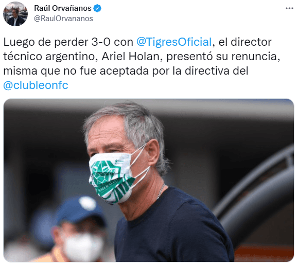 Una vez concluido el encuentro, y de acuerdo a información publicada por el periodista Raúl Orvañanos, Ariel Holan presentó su renuncia ante la directiva de LaFiera. Sin embargo, la misma no habría sido aceptada, por lo que la institución continuaría apostando al proyecto del entrenador argentino.