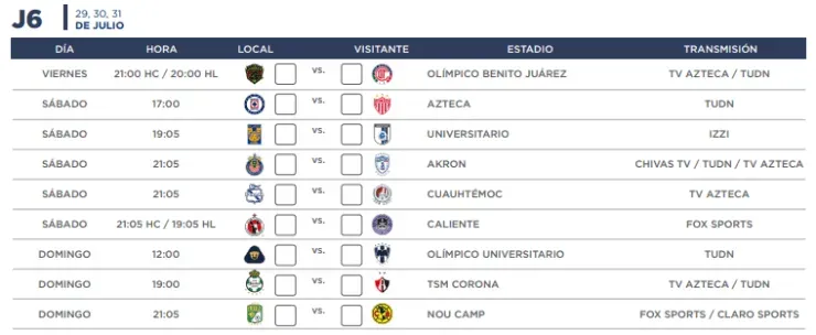 Liga MX: Calendario completo del Apertura 2022