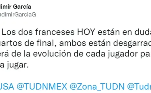 Pero el histórico futbolista Universitario no sería el único. Pues Florian Thauvin también ha sufrido un desgarro, por lo queambos elementos franceses se verían impedidos de disputar, al menos, la ida de los cuartos de final. Así lo reveló el periodista de TUDN, Vladimir García, a través de su cuenta de Twitter.