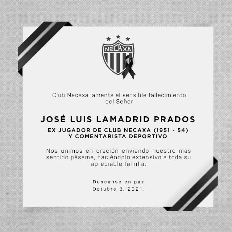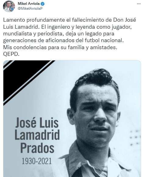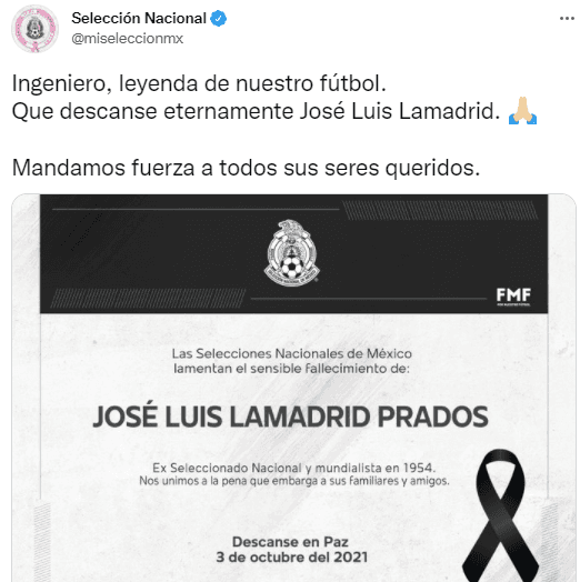 El futbol mexicano está indudablemente de luto. Este domingo falleció José Luis LamadridPrados a los 91 años de edad, ex futbolista de la Liga MX y la Selección Mexicana, quien fuera mundialista en la Copa del Mundo de Suiza 1954 y anotador de un gol para el Tri en aquella cita. Esto despertó la reacción de importantes actores del balompié azteca.