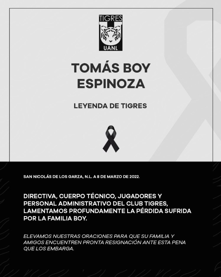 Una noticia que nadie quería dar y que lamentablemente se ha confirmado: Tomás Juan Boy Espinoza perdió la vida este martes 8 de marzo, después de poco más de un día de internación en grave estado de salud a causa de una tromboembolia pulmonar que provocó daños irreparables. Su legado y estará siempre presente en el recuerdo de los aficionados.