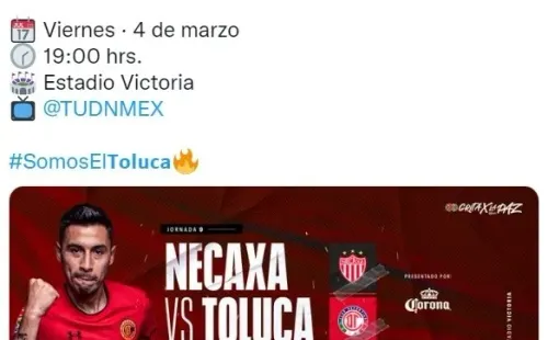 El duelo entreNecaxa vs. Tolucase realizaráHOY, viernes 4 de marzo, desde el Estadio Victoria de Aguascalientes y se llevará a cabodesde las19:00 hora CDMX.