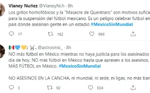 El repudio masivo ante los incidentes, tambien ante la inoperancia policial, no tardó en hacerse ver en declaraciones públicas de quienes son protagonistas del futbol azteca y también en redes sociales, donde tomó fuerza el pedido de dejar a México sin participar del Mundial de Qatar 2022 como un castigo ejemplificador y quitarle además la posibilidad de ser sede en 2026.