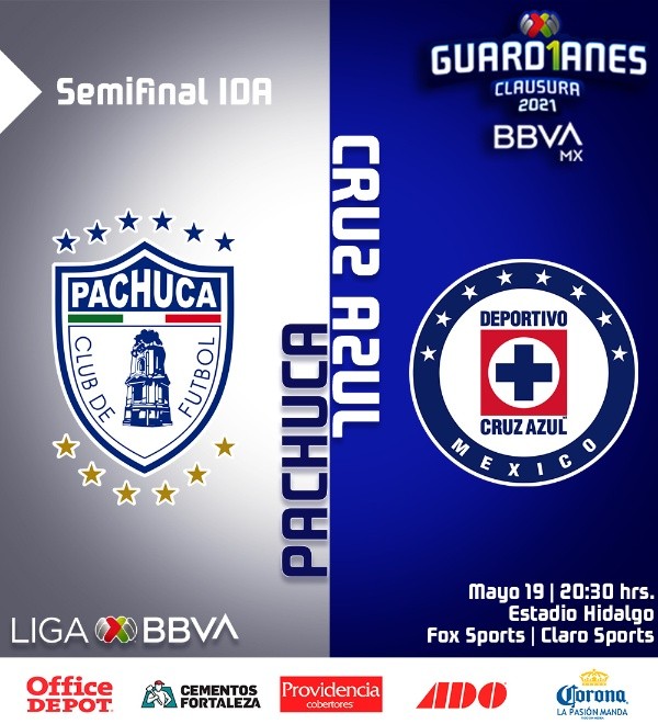 El partido de ida entre Pachuca y Cruz Azul se desarrollaráHOYmiércoles 19 de mayo con cita en elEstadio Hidalgo.