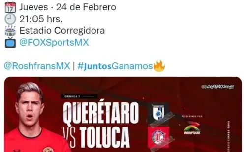 Querétaro y Tolucase mediránHOY,jueves 24 de febrero,en el juego por la séptima jornada de la Liga MX desde el Estadio Corregidora.