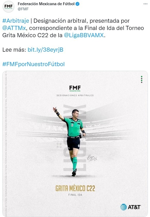Después de unas eliminatorias más que atrapantes, lo que se viene es el desarrollo de laFINAL(IDA) delTorneo Clausura 2022que posee laLiga MX. En esta oportunidad, el vigente campeónAtlaschocará frente a Pachucadesde el Estadio Jalisco con fecha de disputa para el jueves 26 de mayo. Se conoció quién va a ser el árbitro del encuentro.