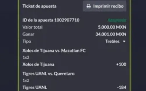 En el ticket que compartió con sus seguidores en redes sociales se puede ver que El César pronosticó un triunfo de Tijuana sobre Mazatlán, una victoria de los Tigres de la UANL sobre Querétaro y un triunfo de Cruz Azul sobre Necaxa, que era el partido que tal vez mayores riesgos suponía para su pálpito.