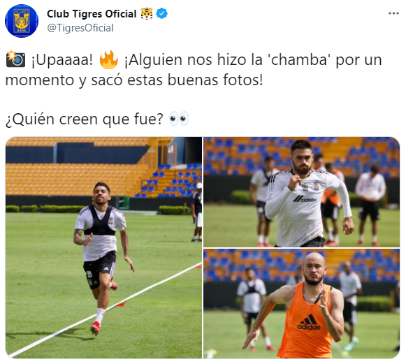 A través de su Twitter oficial, Tigres UANL dejó algunos de los retratos de los jugadores que tomó Nahuel Guzmán en el entrenamiento felino. “¡Upaaaa!¡Alguien nos hizo la ‘chamba’ por un momento y sacó estas buenas fotos. ¿Quién creen que fue?”, publicaron junto a las imágenes.