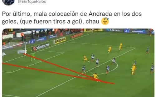 Consumada la contundente victoria del equipo local apareció para dar su impresión el ex portero de Tigres, Enrique Palos, quien a través de su cuenta de Twitter se encargó de exhibir errores de ubicación por parte de Esteban Andrada que ‘facilitaron’ las anotaciones del cuadro Auriazul.