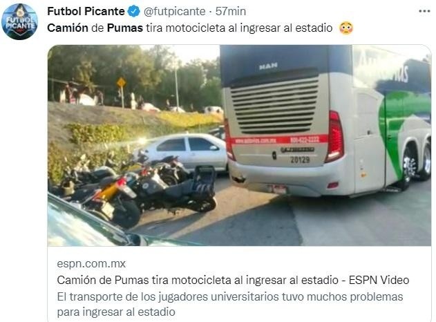Pero los inconvenientes no continuaron allí: De acuerdo a reportes de ESPNdesde las inmediaciones del escenario, mientras el bus intentaba maniobrar para el ingreso derribó la motocicleta de otro fanático, que no estará muy contento al observar los daños en su vehículo.