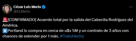 Hace instantes, el Club América le puso fin a una de las situaciones que más de inmediato necesitaba resolver: Jonathan Rodríguez será jugador del Portland Timbers de la Major League Soccer de los Estados Unidos, tras el cierre definitivo de las negociaciones.