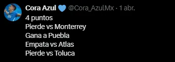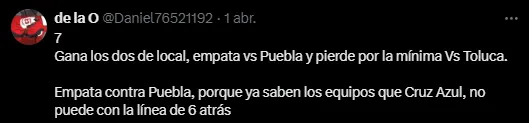 A través de un posteo interactivo en redes, se invitó a los usuarios celestes a hacer su predicción sobre las últimas cuatro jornadas del conjunto de Martín Anselmi, y la amplia mayoría de los hinchas anticipó una derrota ante Toluca en el infierno.