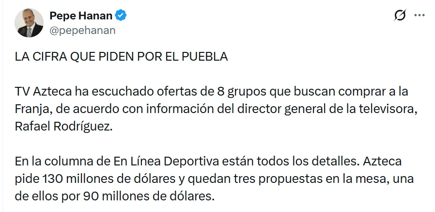 - TV Azteca pide 130 millones de dólares para concretar la venta del Club Puebla.