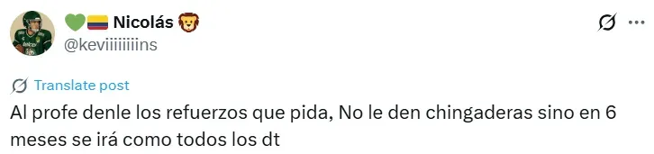 En tanto, otros indicaron: “Hay mucho trabajo por hacer, además de revivir un equipo sin carácter hay que recuperar hambre de ganar y el ADN de este equipo”, “al profe denle los refuerzos que pida, sino en seis meses se irá como todos los DT” y “se necesita tiempo para Ambriz”.