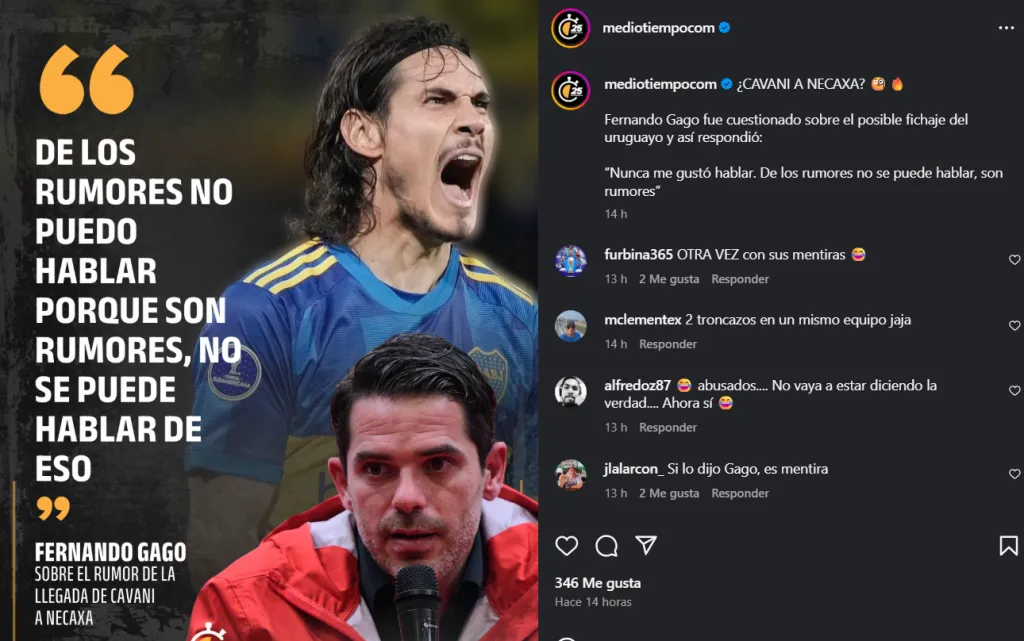 En los últimos días comenzó a correr un fuerte rumor dado que vincularon a un delantero con muchísima experiencia con el conjunto mexicano. Se trata de Edinson Cavani, uruguayo que se encuentra en Boca Juniors y que Gago dirigió en el Xeneize.