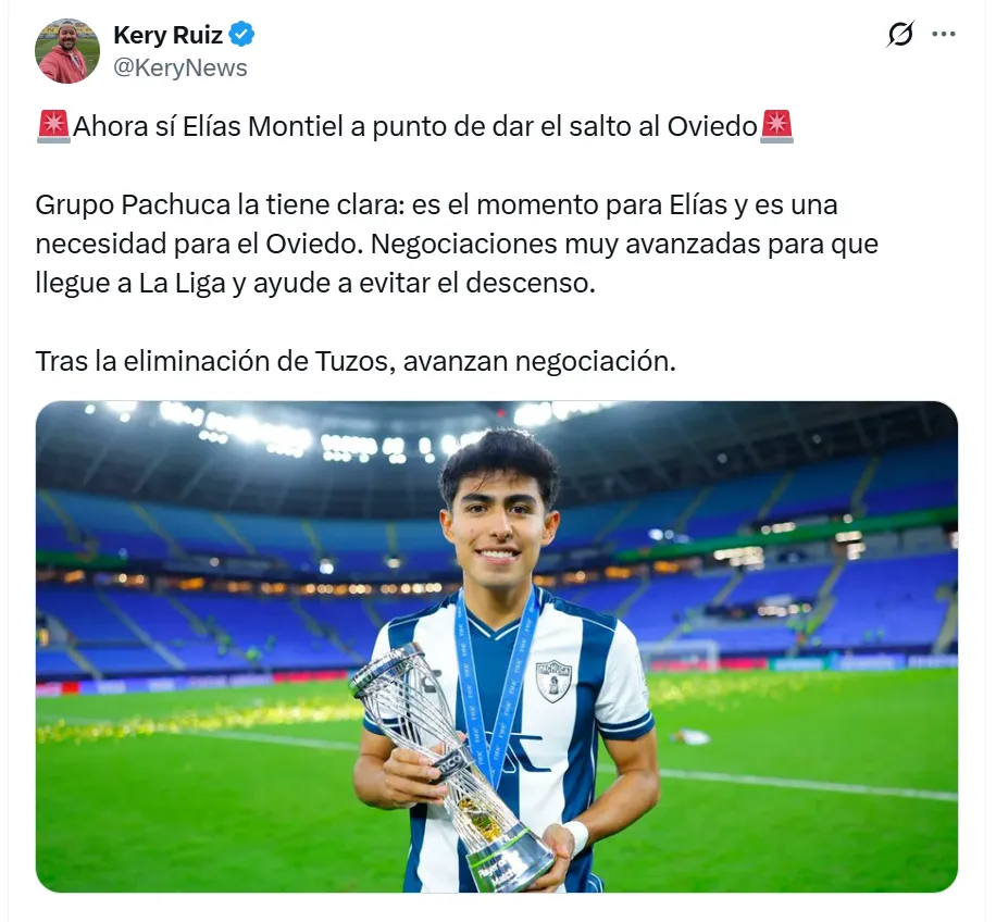 Mientras tanto, ya se empieza a hablar del mercado de pases y uno de los jugadores más importantes podría salir. Según información del periodista Kery Ruiz, Elías Montiel estaría en avanzadas negociaciones para jugar en Europa, específicamente en el Real Oviedo de España, equipo que pertenece al mismo grupo empresario que Pachuca, con el objetivo de ayudar al club español a salvarse del descenso.