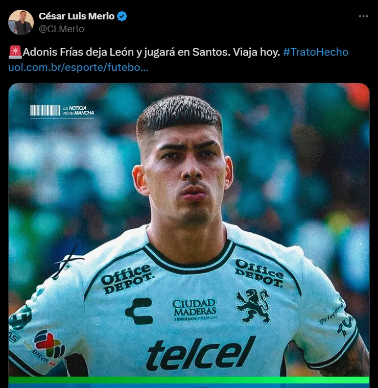 Según informaron César Luis Merlo junto a Lucas Musetti y Flavio Latif, los brasileños pagarán 4 millones de dólares por la ficha del futbolista del equipo mexicano. La operación deja a León con la necesidad de reforzarse para no perder competitividad en el torneo.